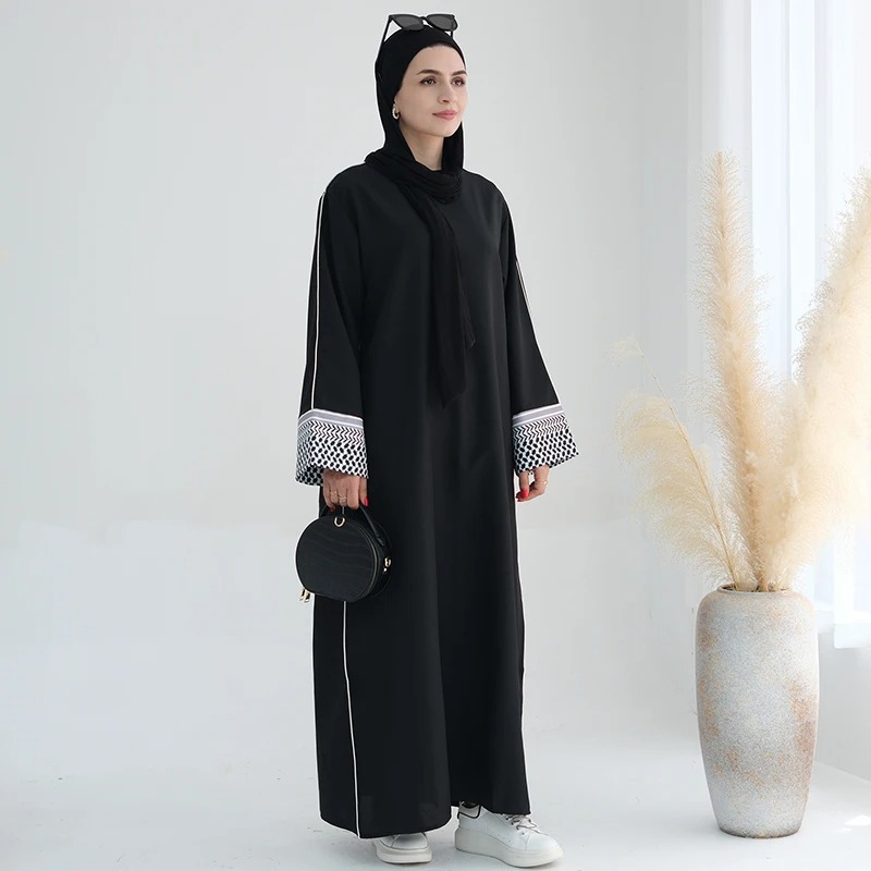 ملابس إسلامية محتشمة للنساء، عباية عصرية مزينة بطبعة أنيقة، تصميم قفطان مثالي لشهر رمضان والعيد. عباية مغلقة وفستان إسلامي مستوحى من ستايل دبي، يجمع بين الراحة والأناقة للإطلالات اليومية والمناسبات الخاصة