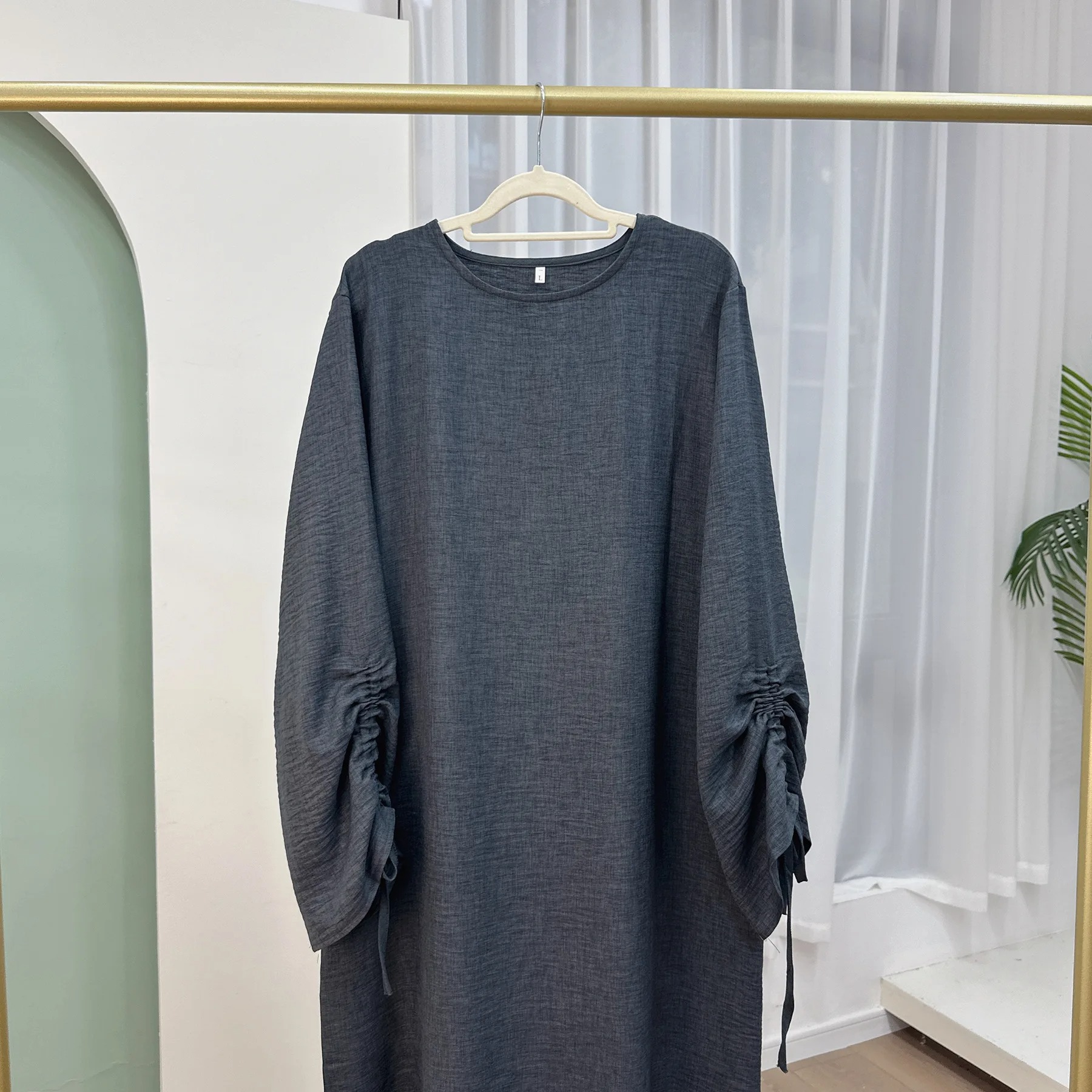 عباية طويلة بتصميم محتشم وأنيق يناسب العيد والطلعات. جاي بقماش سادة مع لمسة دانتيل على الأكمام تعطيه فخامة بدون مبالغة. ستايله خليجي على طراز دبي وتركيا، مريح وعملي للحفلات والعطلات. خيار مثالي لإطلالة بسيطة ومرتّبة